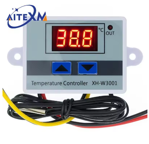 10A 120W AC Digital LED Temperature Controller – XH-W3001 for Incubator, Heating & Cooling Thermostat with NTC Sensor (12V, 59.5×44.5×31mm)