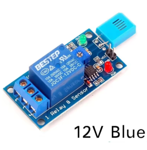 The 12V Humidity Switch Relay Module (Blue) is an intelligent environmental control device designed to automate equipment based on ambient humidity levels. Operating on a stable 12V DC input, this module features a high-precision humidity sensor and a built-in relay that acts as an automatic switch. When the surrounding humidity reaches your preset threshold, the relay activates or deactivates connected devices such as exhaust fans, dehumidifiers, mist makers, or pumps.