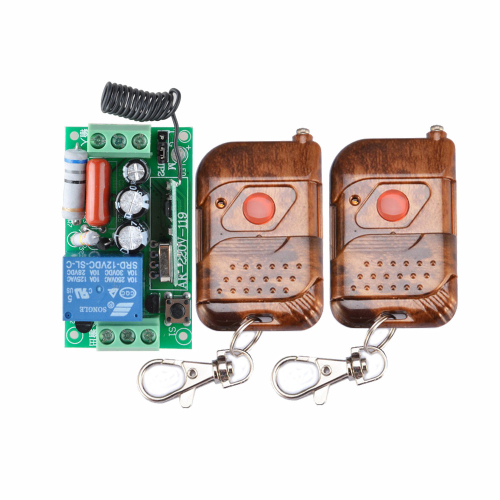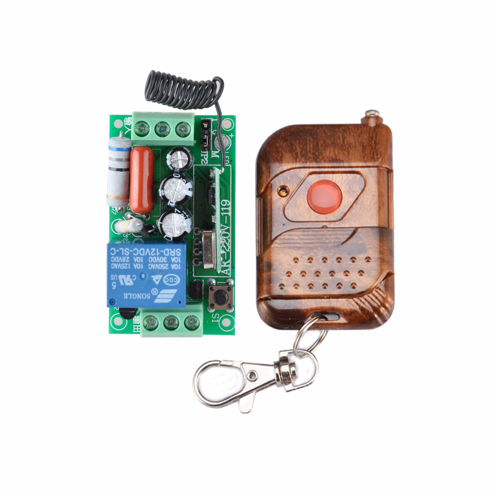 The system includes a compact receiver board capable of handling up to 220V AC, paired with a stylish walnut-finished remote controller. The 433MHz wireless frequency ensures stable signal penetration through walls and obstacles, providing reliable control for home automation, industrial equipment, and DIY projects. Whether you are retrofitting existing lighting systems or building automated machinery, this module offers a simple, effective solution.