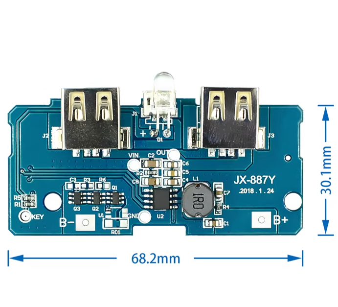 • High-Efficiency Boost Conversion: Converts a 3.7V Li-ion battery input to a stable 5V output with efficiency up to 92%, minimizing power loss and extending battery life .