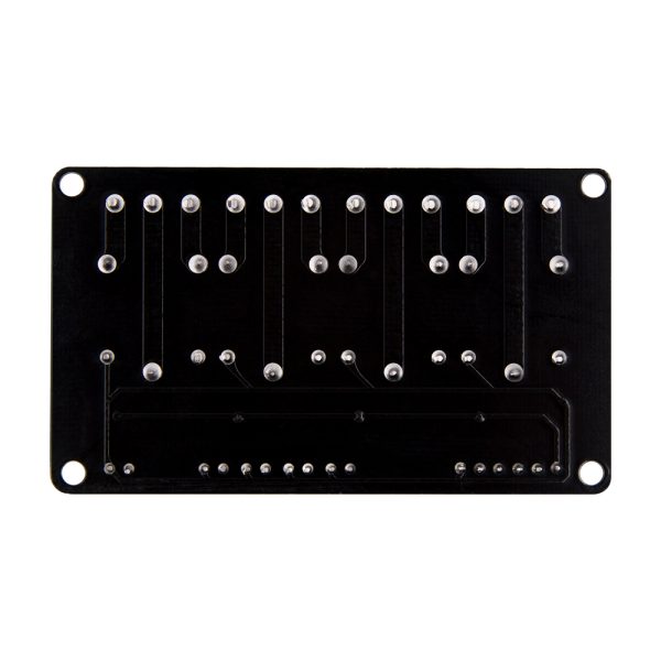 The module features heavy-duty screw terminal blocks for reliable load connections and a 4-pin male header (2.54mm pitch) for easy connection to your microcontroller. Four mounting holes (3.1mm diameter) at each corner allow for secure installation in enclosures or on DIN rails using optional adapters .