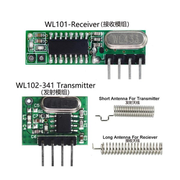 Complete Wireless Control Kit – Includes transmitter (remote control) and superheterodyne receiver module with built-in relay output