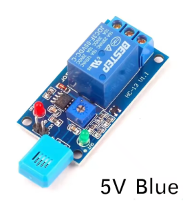 The 5V Humidity Switch Relay Module (Blue) is a complete, self-contained humidity monitoring and control solution that automatically activates or deactivates electrical loads based on environmental humidity levels. Unlike complex sensor systems that require microcontrollers and programming, this module operates as a standalone device — simply apply 5V power, connect your load, adjust the threshold, and the module handles the rest .