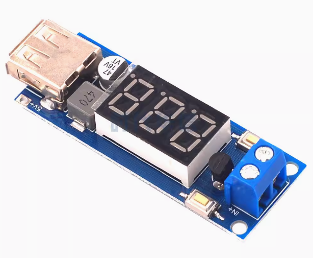 The 6.5-40V to 5V DC-DC Step-Down Power Converter Module is a versatile, high-efficiency switching regulator designed to convert higher DC voltages (from 6.5V to 40V) into a stable 5V output suitable for powering USB devices. This all-in-one module combines a buck converter, a digital LED voltmeter, and a USB charging port in a compact, ready-to-use package.