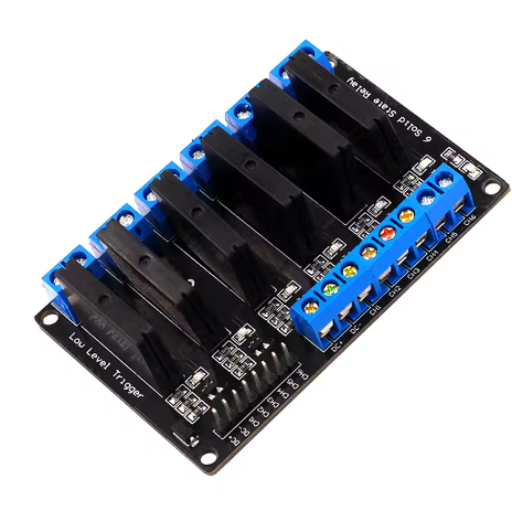 The 6-Channel Solid State Relay Module (AC to DC Control) is a sophisticated, high-density interface bridge engineered to seamlessly connect traditional AC-based control systems with modern DC-powered equipment. This advanced module enables six standard 100-240V AC control signals—such as those from wall switches, timers, or safety interlocks—to independently and safely operate low-voltage DC loads ranging from 3V to 24V. It is the ultimate solution for upgrading legacy installations, integrating mixed-voltage systems, and building reliable control panels where AC logic must command DC actuators, sensors, or electronics.
