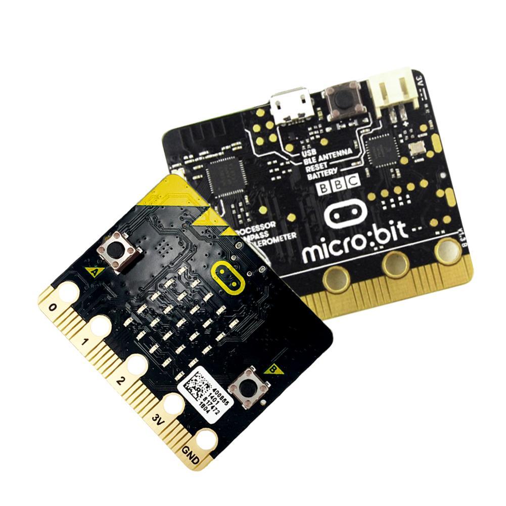 V1.38 (this model) uses an ARM Cortex-M0 and is strictly for visual/motion coding. V2.x adds a built-in microphone, speaker, and a more powerful processor. V1.x is often preferred by schools and businesses for its lower price point and stability for basic IoT tasks