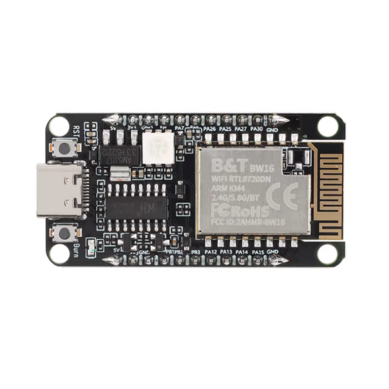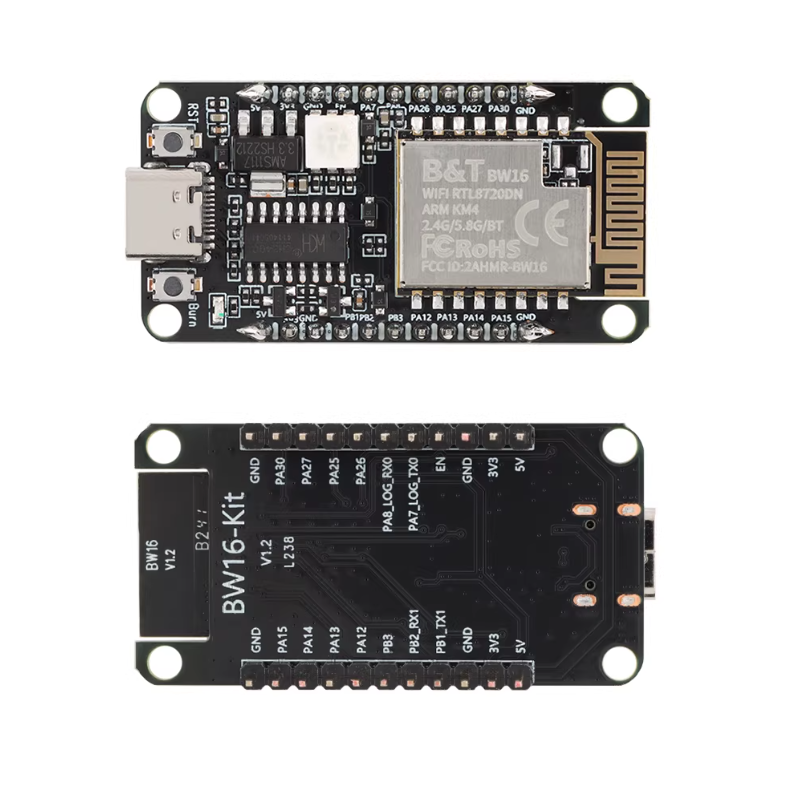 Unlike traditional ESP8266 or ESP32 modules that operate only on the congested 2.4GHz band, the BW16 supports the less crowded 5GHz frequency, offering faster data rates (up to 150 Mbps), reduced latency, and improved resistance to interference—perfect for high-bandwidth applications like HD video streaming or real-time control systems .