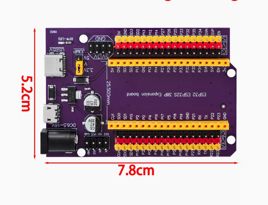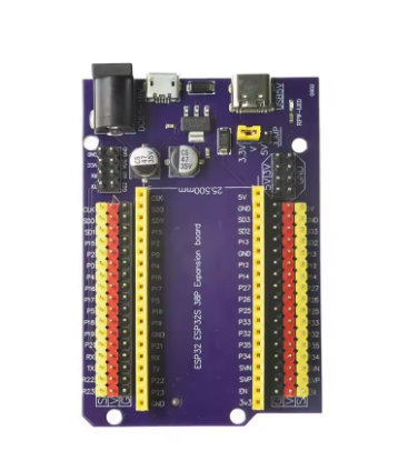 - High Pin Density: The 38-pin configuration offers the maximum possible I/O breakout for the ESP32-WROOM-32S module.