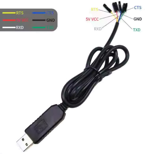 • TXD → Target RX (Transmit from cable goes to Receive on target)