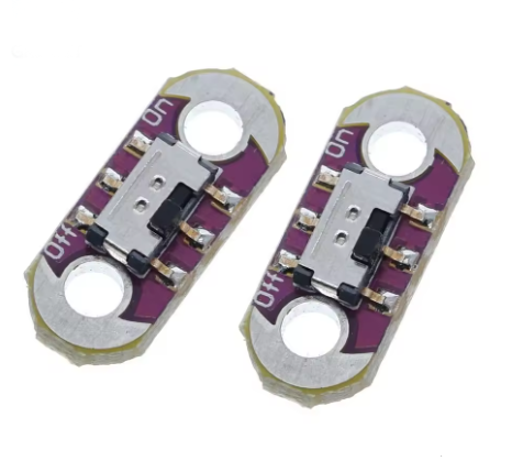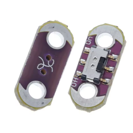 The LilyPad Slide Switch AYZ0202 is a robust and discreet control component designed specifically for integrating power control into wearable electronics and e-textile projects. As part of the LilyPad ecosystem developed by Leah Buechley and SparkFun, this component allows users to easily turn circuits on and off within fabric-based projects using conductive thread. Its compact size, low profile, and large, conductive sewing pads make it ideal for both hobbyists creating custom garments and businesses developing commercial e-textile products.