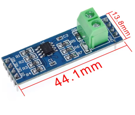 The MAX485 TTL to RS485 Converter Module is a compact, high-performance interface module designed to convert UART/TTL serial signals to the industry-standard RS485 differential communication protocol. Powered by the reliable MAX485 chip from Maxim Integrated, this module allows your microcontroller (Arduino, ESP32, STM32, Raspberry Pi) to communicate over long distances (up to 1200 meters) in electrically noisy industrial environments .