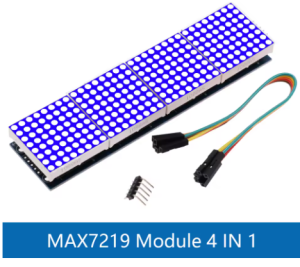 The MAX7219 4-in-1 Dot Matrix Display Module is a powerful and versatile LED display solution designed for microcontroller-based projects, electronic signage, and visual information systems. This module integrates four individual 8×8 blue LED dot matrix panels into a single compact unit, creating a combined display area of 8 LEDs wide by 32 LEDs long (8×32 resolution) . Each of the 256 blue LEDs can be individually controlled, enabling the display of scrolling text, static messages, custom graphics, animations, and even simple video game graphics.