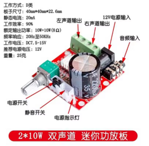 | Output Power | 2 x 10W (8Ω load @ 12V DC) [Note: Max 15W into 4Ω] |