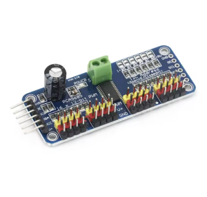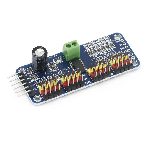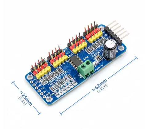 - I²C Communication: Uses only two I/O pins (SDA, SCL) to control all 16 channels, freeing up valuable microcontroller pins.