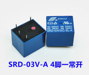 The SRD-03VDC-SL-A is a high-quality, subminiature electromagnetic relay manufactured by Songle (Songle Relay) , one of the most trusted names in the relay industry. This 4-pin, 1 Form A (SPST-NO) relay is designed to switch loads up to 10A at 250V AC or 30V DC, making it an ideal choice for a wide range of applications including home appliances, office equipment, audio systems, and industrial control circuits .