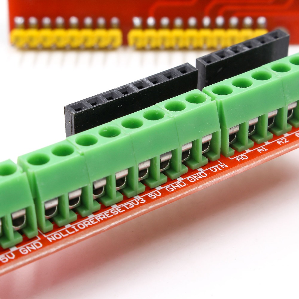 - Secure Screw Terminals: Provides robust, reliable, and secure screw-down connections for all digital I/O (D0-D13) and analog input (A0-A5) pins.