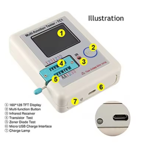 • Automatic Component Detection: Instantly identifies NPN and PNP transistors, N-channel and P-channel MOSFETs, JFETs, diodes (including Zeners), and more.